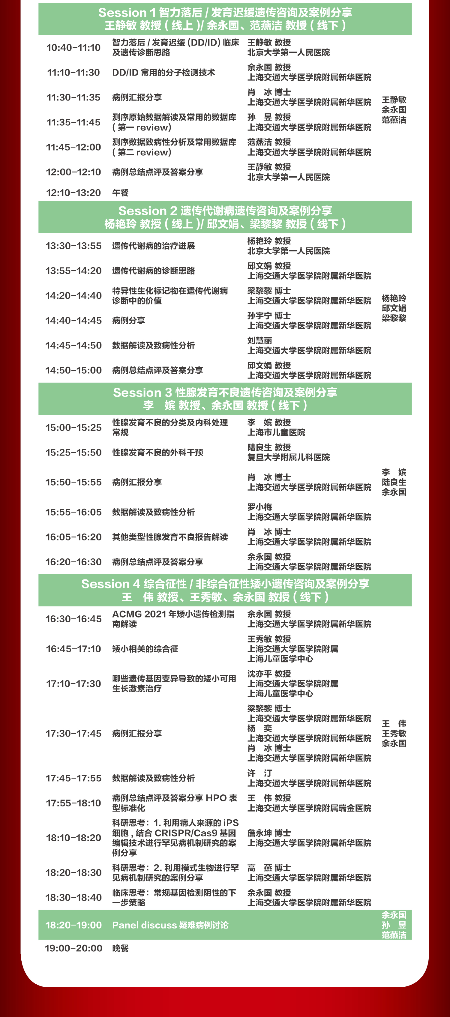 此次會議將采用專家專題閉門會、特邀主題演講、專題會、會議交流及實操訓練等多種形式,圍繞“罕見骨病和溶酶體貯積癥”、“兒童生長發(fā)育障礙性遺傳病”等主題,邀請國內外頂尖專家展開罕見病、遺傳病診療新進展學術報告,由經驗豐富的一線專業(yè)人員帶來遺傳咨詢及遺傳報告解讀實操培訓,將當今罕見骨病、溶酶體貯積癥、兒童生長發(fā)育障礙性遺傳病最前沿的信息帶紿大家,為一線臨床和科研工作者提供一個理論研究和成果交流的學術平臺。