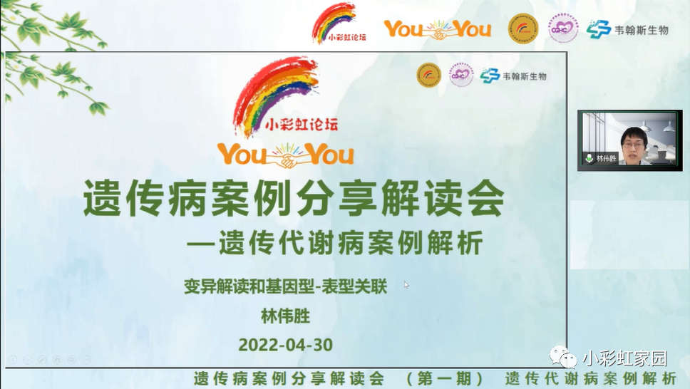 基因組醫(yī)學(xué)時(shí)代,為了提高遺傳病基因檢測(cè)報(bào)告的解讀能力,推進(jìn)臨床遺傳咨詢相關(guān)工作,上海市遺傳學(xué)會(huì)臨床遺傳與遺傳咨詢專業(yè)委員會(huì)(CGGC)和小彩虹醫(yī)學(xué)遺傳學(xué)者會(huì)聯(lián)合多個(gè)學(xué)會(huì)組織推出的“小彩虹YOU-YOU”遺傳病案例分享解讀會(huì),4月30日,第1期“遺傳代謝病案例解析會(huì)”線上圓滿舉行。