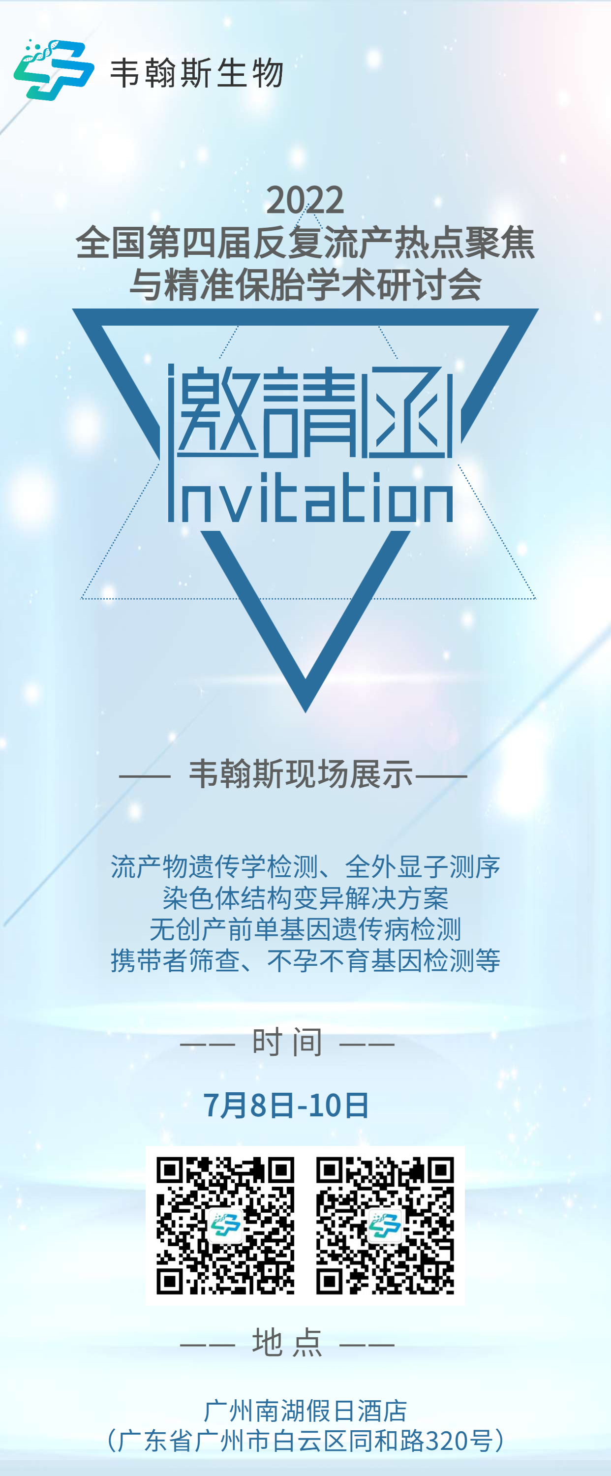 2022年7月8日-10日,韋翰斯生物將受邀參加由廣東省醫(yī)療行業(yè)協(xié)會主辦、廣東省醫(yī)療行業(yè)協(xié)會復發(fā)性流產(chǎn)管理分會承辦的“2022全國第四屆反復流產(chǎn)熱點聚焦與精準保胎學術研討會”暨國家級繼續(xù)醫(yī)學教育項目“2022年復發(fā)性流產(chǎn)臨床學術研討會”。會議將在廣州舉行。誠邀各位專家學者蒞臨指導,進行學術交流與探討。